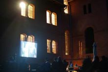 Übersichtsvortrag von Oliver Behnecke und Peter Roloff über die Gießener Auswanderungsgesellschaft und die Reisende Sommer-Republik. Rund 50 Zuhörerinnen und Zuhörer fanden den Weg durch den innenstädtischen Samba-Karneval zum Vortrag mit Filmbeispielen und anschließendem Gespräch.